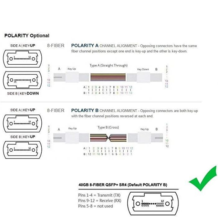 MPO-MPO OM3 マルチモード 光パッチケーブル 8芯 QSFP+モジュール用光ケーブル(5m)